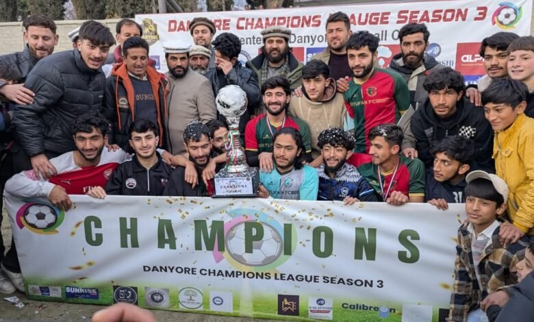 دنیور (سجی ڈیسک)دنیور چیمپئن لیگ سیزن 3 کا گرینڈ فائنل دنیور پولو گراؤنڈ میں کھیلا گیا، جہاں فٹبال کے شائقین کو ایک سنسنی خیز مقابلہ دیکھنے کو ملا۔ فائنل میچ طوفان ایف سی اور الحجت ایف سی کے درمیان ہوا جس میں طوفان ایف سی نے شاندار کارکردگی کا مظاہرہ کرتے ہوئے ایک کے مقابلے میں 3 گول سے کامیابی حاصل کی اور ٹائٹل اپنے نام کر لیا۔